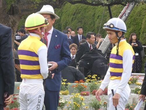 今日2件目は、約1ヶ月振りのレースで見事逃げ切り勝ちをおさめたタイガーバローズを表敬訪問。 実は昨日代表馬主さんのユークローさんより訪問する旨を聞いたので、私も無理矢理同行したもの。私が37号厩舎に着いた時には、既にユークローさんと笹野先生は…